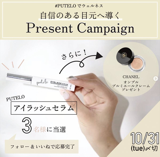 ・PUTELO公式 Instagram( @putelo_official )のフォロワーの方が対象で、抽選時に、アカウントフォローの状態を継続いただいていることが確認できない場合、抽選の対象から外れることがあります。